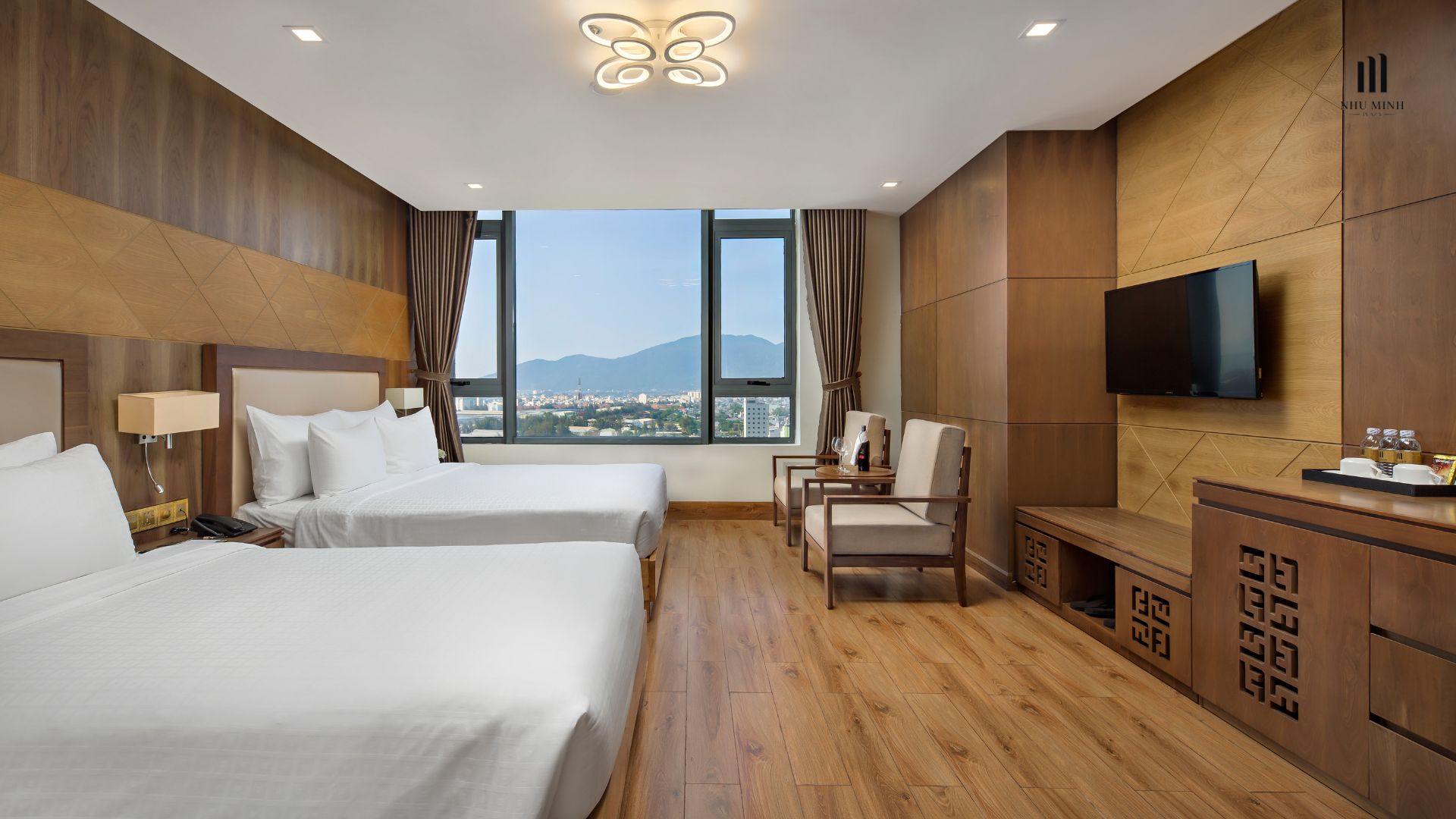 Tọa lạc trên đường Phạm Văn Đồng, con đường nối liền giữa biển Mỹ Khê và cầu sông Hàn, khách sạn Nhu Minh Plaza sẽ là lựa chọn cho kỳ nghỉ gia đình thoải mái và tiện nghi. Hệ thống phòng khách sạn rộng rãi từ 30m2 với đa dạng loại giường rất thích hợp với gia đình đa thế hệ. Cùng khám phá chi tiết ưu đãi phòng dịp Tết Ất Tỵ 2025 của Nhu Minh Plaza bạn nhé: